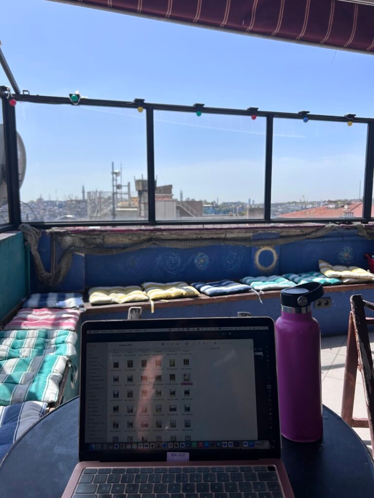 J’ai aussi beaucoup aimé Postane, dans le quartier Galata, qui est ancien édifice de la poste britannique reconverti en centre culturel et café. La nourriture proposée est très santé et bio, avec beaucoup d’options véganes, de quoi faire le plein d’énergie pour un rythme de voyage et travail. J’y ai passé une journée complète pour travailler dans la bibliothèque, puis j’ai dîné sur place. L’endroit est calme, la connexion wifi correcte, et l’ambiance propice à la concentration. Idéal pour les digital nomads qui cherchent un lieu de travail en dehors des chaînes de cafés habituelles.